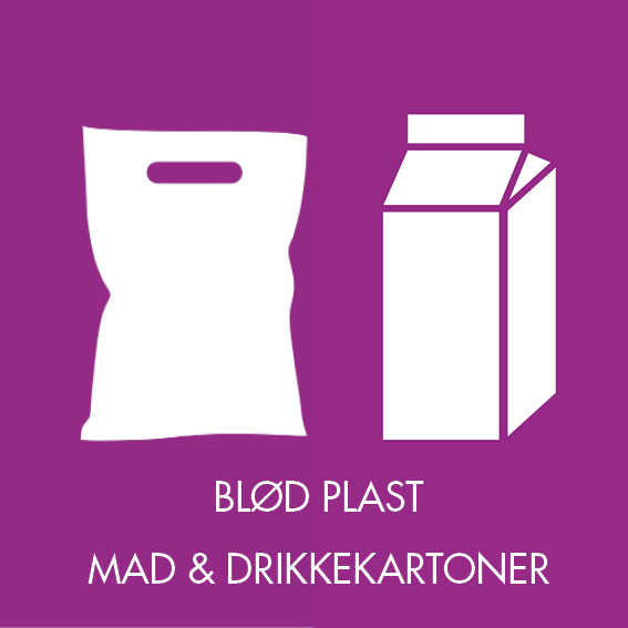 - Plastfolie (Blød plast og mad- og drikkekartoner)