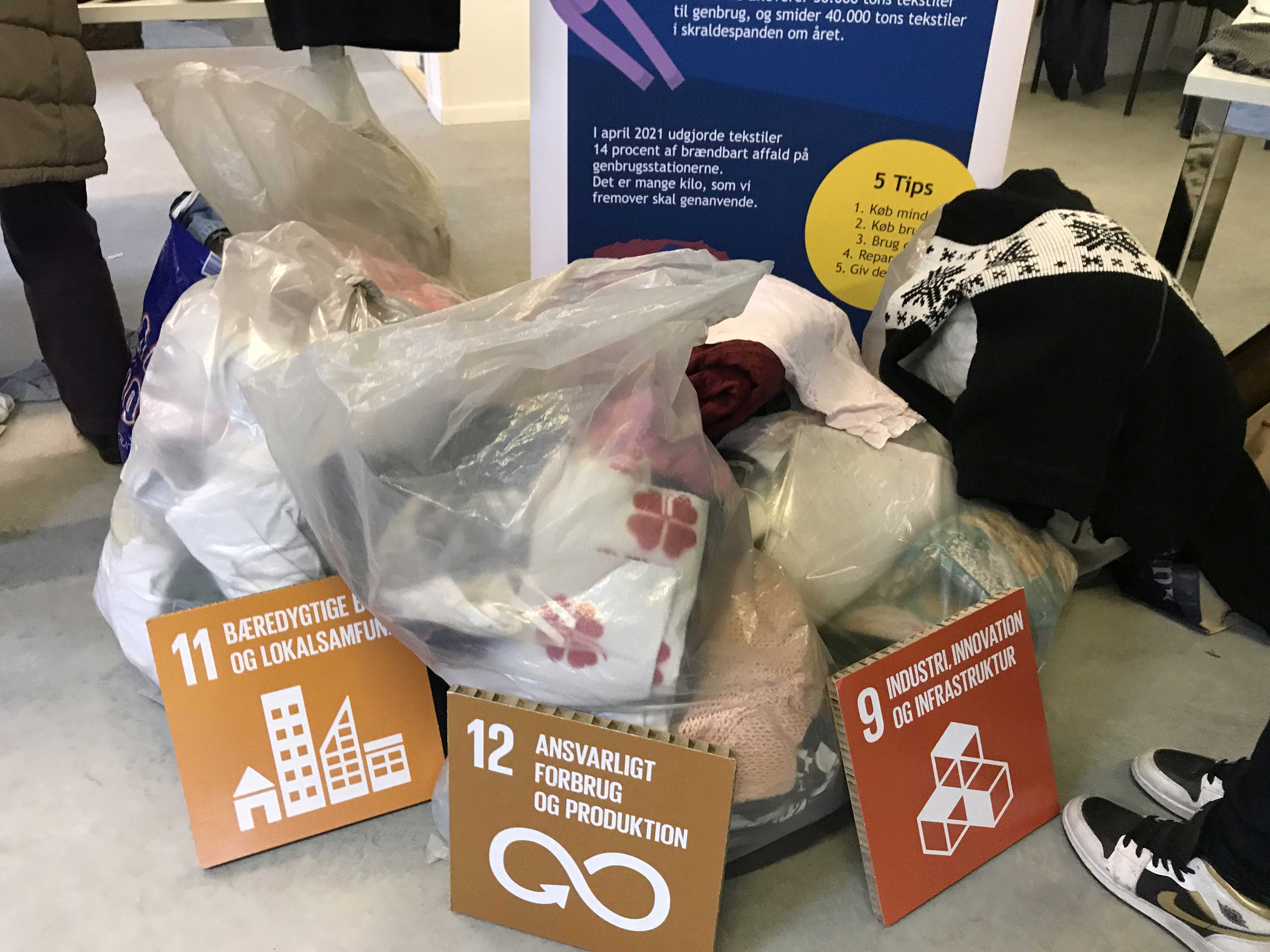 Mød kommunens affaldsteam, som i dagens anledning har kasserede tekstiler med fra genbrugsstationerne. Der er helt sikkert noget til dit næste projekt.